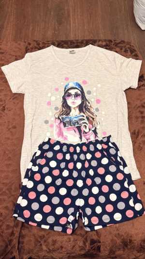 Пижама с шортами женская, хлопковая, ни разу не одевалась, бирочка присутствует. Очень удобная, стильная, свободная.