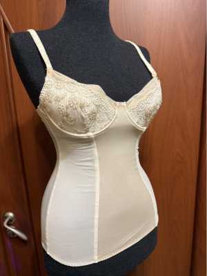 Бежево-молочный топ с чашками. Размер М. (75В) На манке 42-44 Можно под прозрачную одежду использовать.
