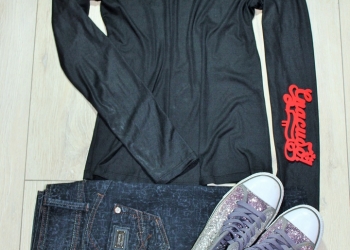 Водолазка, состояние отличное. На плечах блестящие эполеты из пайеток чёрного цвета. Смотрится нарядно.