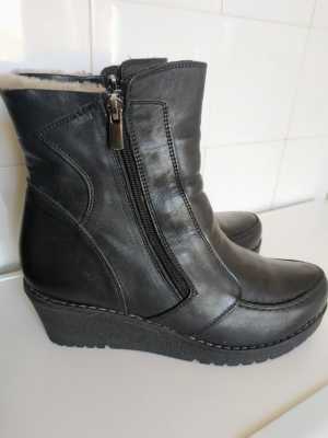 Ботинки натуральная кожа. Фирма Zenden. Внутри натуральный мех. Молнии с двух сторон, на танкетке. Размер 38.