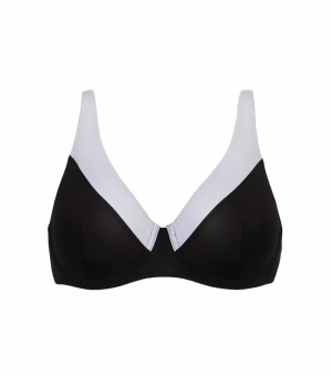 Лиф чёрно-белый, мягкий на косточках, размер 90D. Основной материал:82%полиамид,16%эластан. Подкладка 100% полиамид.