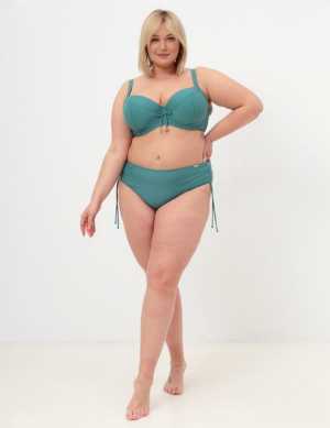 Купальник раздельный на даму с пышной грудью в цвете полынь. Лиф с формирующей чашкой 90G+трусы завышенной посадки.