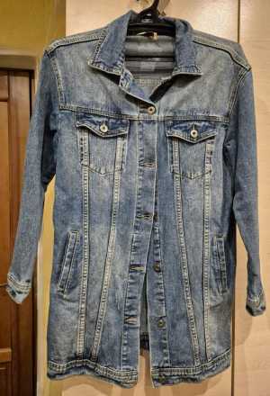 Джинсовая куртка в отличном состоянии, размер 42 (S). Синий цвет с эффектом потертости придаёт изделию современный вид.