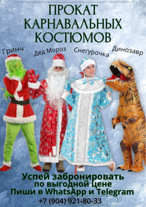 Аренда гринча Цена 2000р Аренда динозавра, цена 1500 р Аренда дед мороз и снегурочка Цена комплекта 2000р В...