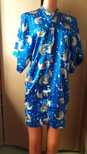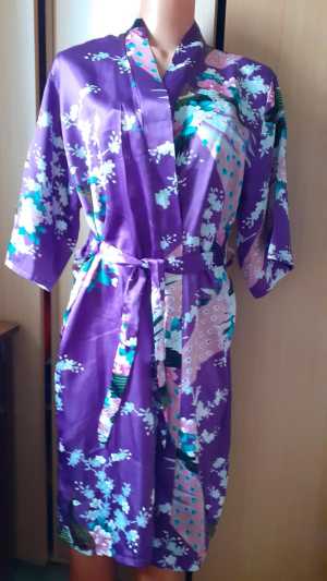 Халат женский, атласный, с красивым принтом. Яркой расцветки. Размер: 50- 52.