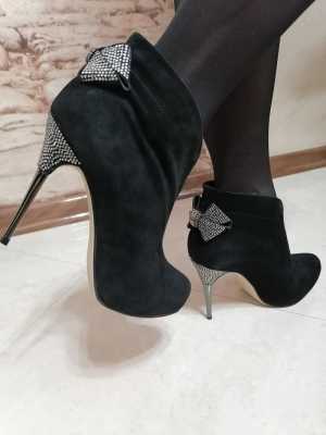 Продвм ботильоны из натуральной замши. Размер 36. Каблук шпилька 9.5 см. Колотка удобная. Бренд Gerda.