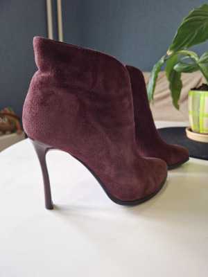 Тёмно-бордового модного цвета, изящные замшевые полусапожки.
