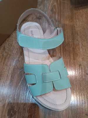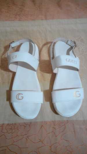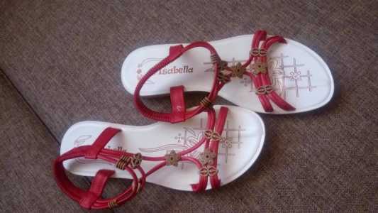 Босоножки на полную ногу. Размер 38. Без застежек, очень удобно. Нашмыгнул и пошел.