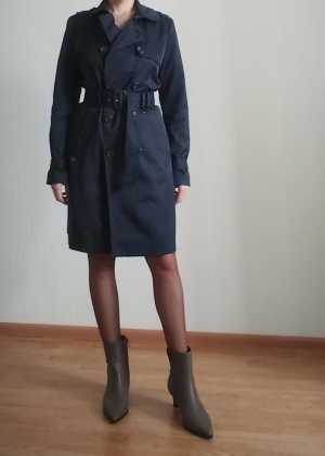 Плащ темно-синего цвета. Качество отличное, фурнитура в идеальном состоянии, с подкладом. Размер 42. Выгуливали пару раз.