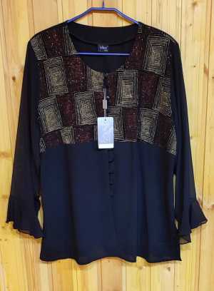 Блузка женская нарядная. Цвет черный.. Шифон, отделка бисером. Новая. Размер 56.