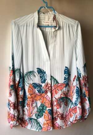 Блузка женская HOLLY&WHYTE Размер 46-48 Полиэстер Цвет на белом фоне голубая полоска, яркие цветы и листья монстеры...