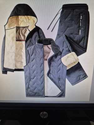 Осень-зима Новый мужской теплый трех-секционный костюм. Куртка с капюшоном+ жилет + брюки из хлопка внутри овечья шерсть.