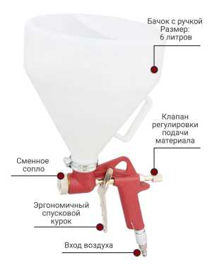 Пистолет-распылитель Hopper с воздушным резервуаром с 3 насадками. 4/6/8 мм.