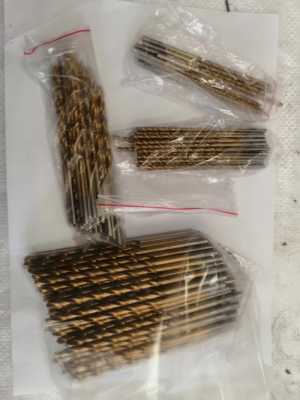 Сверло удлиненные с покрытием Р9 ТИЗ 1.диаметр 5мм-длина-85/130-70шт 2.диаметр 4мм-длина -75/118-15шт 3.диаметр 3.