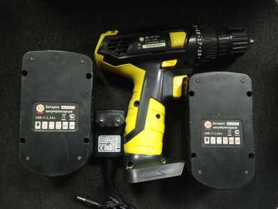 Дрель шуруповерт Калибр ДА-18-2А в рабочем состоянии, два аккумулятора, зарядка.