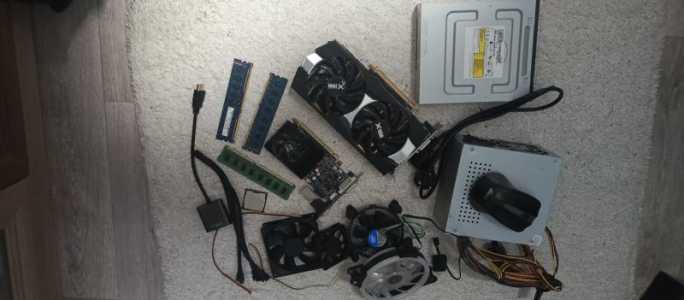 Тут 2 видеокарты 3 плашки оперативки 1 блок питания кулера 120цатка 80десятка и 60дясятка дисковод полностью рабочий также...