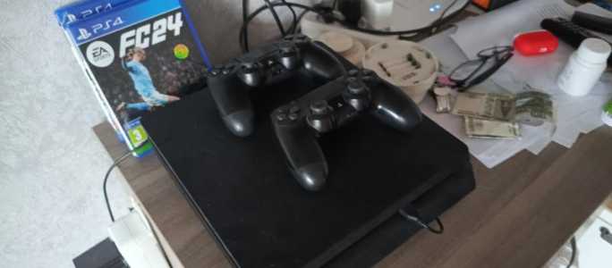 Продаю пс4 Слим.Полностью рабочая,также в комплекте 2 джойстика и 2 игры