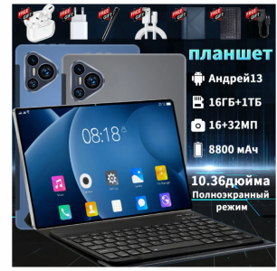 Планшет Новый умный планшетный компьютер имеет диагональ 10,36 дюйма, поддерживает русский язык + Wi-Fi + русскую новинка...