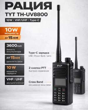Новинка от TYT иодель TH UV8800 - обновление популярной UV8000D Диапазон 136-174/400-480/108-136(TX), мощность 10Вт...