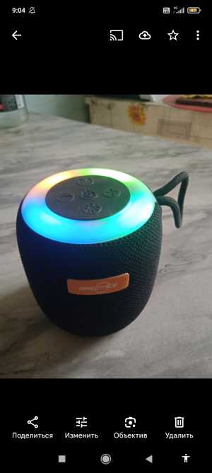 Колонка работает от телефона по блютуз.Переливается.Звук отличный.На самой колонке есть управление громкостью,треками.