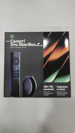 Без торга. Тв-приставка SberBox 2 SBDV-00006 предлагает 100+ каналов с программой передач бесплатно.