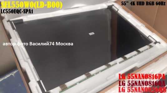 матрица 55" 4K UHD 60Hz маркировка SEL550W0(LD0-B00) SEL550W0(LD0-B02) LC550EQC(SP)(A1) LC550EQC-SPA1 применение...