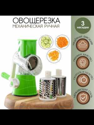 Овощерезка механическая Доляна Mandoline Slicer, цвет салатный.3 насадки.