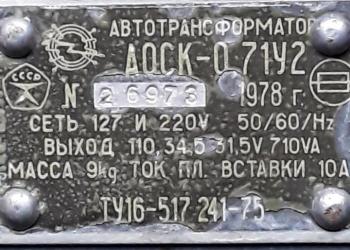 Подам автотрансформатор АОСК-071У2 сеть 127V и 220V 50/60 Hz выход 110V 34.5V 31.