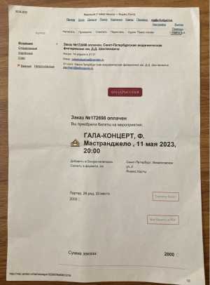Сегодня 11.05.2023 1 билет Филармония СПБ. Гала концерт. Начало в 20.00. Ряд 26, место 33, партер. Билет электронный.