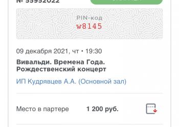 Продаю только 2 билета на концерт времена года 9 декабрь 2021 года Описание Продолжительность: 1 час 20 минут Для людей...