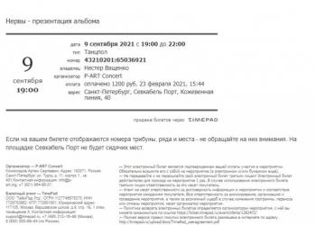 Продам один билет на концерт группы "Пикник". 16 сентября в 19:00 в FESCO HALL. Партер / ряд 2 / место 24