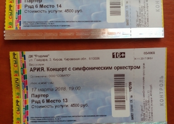 Продаю 2 билета в Родину (г.Киров) на гр.Ария на 17.03.2018 в 19.00. Билеты на самые дорогие места.