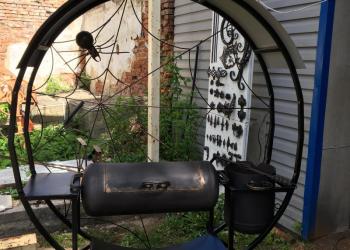 Мангал из газового баллона с печью под казан с задней стенкой в виде паутины