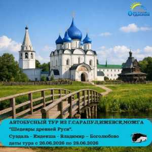 Маршрут:Суздаль - Кидекша - Владимир – Боголюбово из Сарапула Даты тура с 26.06.2026 по 28.06.