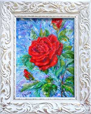 Авторская картина Заснеженная роза , 24Х18 см, холст на картоне, масло, художник Любовь Прусик.