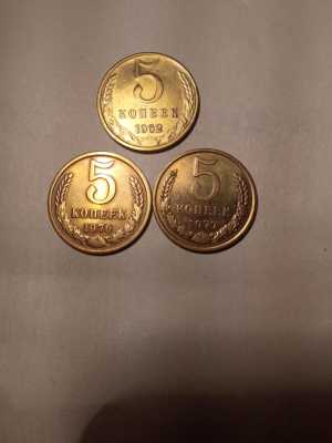 Набор монет 5коп 1962,1976,1977г.СССО.Оригинал.Все монеты в блеске. Цена за лот. Возможна продажа по одной.