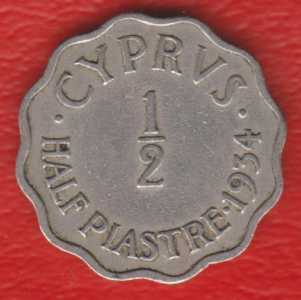 Кипр Британский 1/2 пиастра 1934 г. Состояние на сканах и фото.