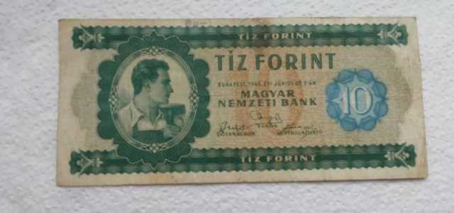 Продам 10 форинтов 1946 года, состояние нормальное, на мешке цена такой же купюры, гораздо худшего состояния 35 тыс.