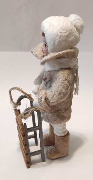 Ватная игрушка ручной работы, высота 11 см, выполнена из цветной льняной краски, для прочности покрыта акриловым лаком.
