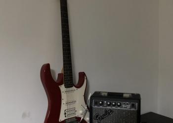 Электронная гитара Homage, маленький усилитель и провод для подключения.