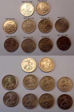 5 копеек 1997-2014. 50 разновидностей. Цена за набор 50 разновидностей штемпелей, согласно каталога АС 5 коп 1997 СП 2.