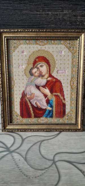 Предлагаю вашему вниманию благословлённую икону Богородицы Владимирской, выполненную вручную в технике вышивка бисером.