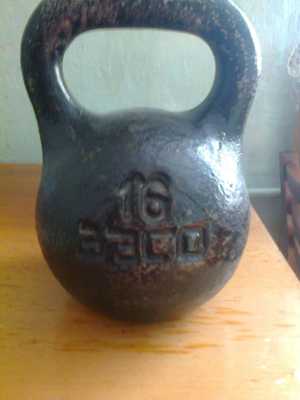 Продам гирю 16кг и пару гантелей по 3кг. Чугунные . Производство СССР. Самовывоз. Цена за всё вместе .