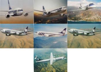 7 открыток самолётов польской авиакомпании ЛОТ. 1999 год, чистые.