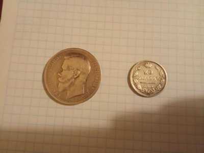 Продам монету серебряная номиналом 20 копеек, 1825 г. (Оригинал) и монету 1 рубль, Николай 2,серебро , 1897г. (Оригинал).