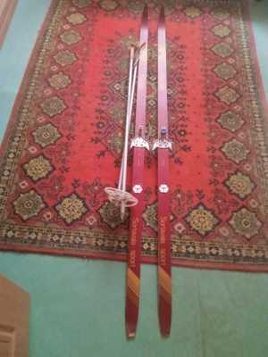 Продаю беговые деревянные лыжи Karjala, Sortavala, 190см с креплениями и палками 115 см, б/у, состояние хорошее