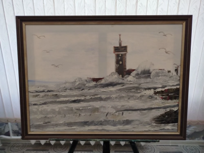 Маяк. Картина маслом на холсте 50х70, с рамкой 55.5 х 75.5