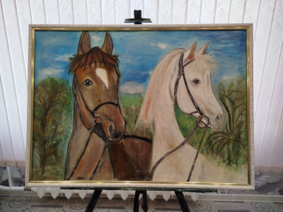 Лошади. Картина маслом на холсте размер 50х70 см, с рамкой 53х73 см.