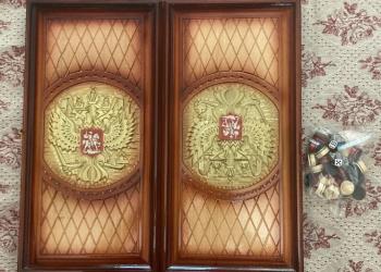 Нарды-ручной работы-Герб! Новые Размер: 50/25 В комплекте идёт: 15/15-фишки и 2 зарика