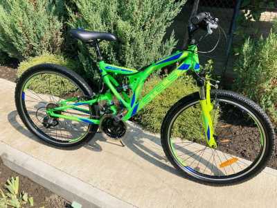 Двухподвес в отличном состоянии, пробег всего примерно 600км. Тормоза заменены на гидравлику Shimano mt401.